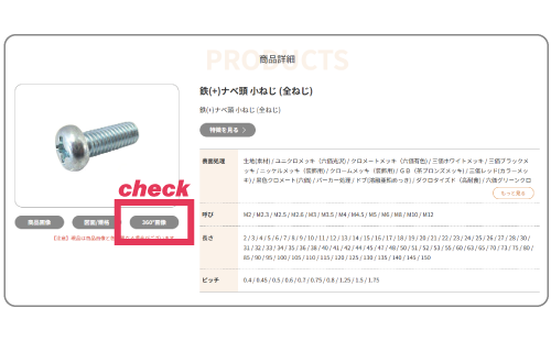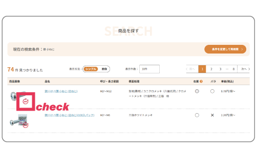 ねじNo1.comでは、以下の2つの箇所に専用のマークを表示しています。